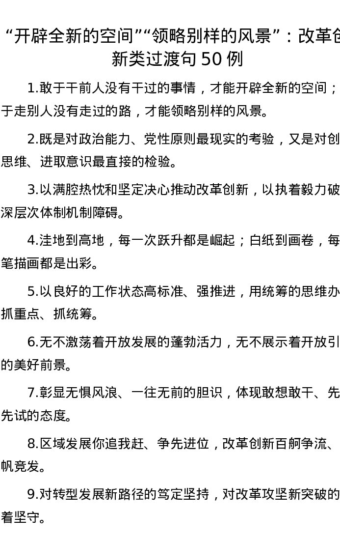 “开辟全新的空间”“领略别样的风景”:改革创新类过渡句50例