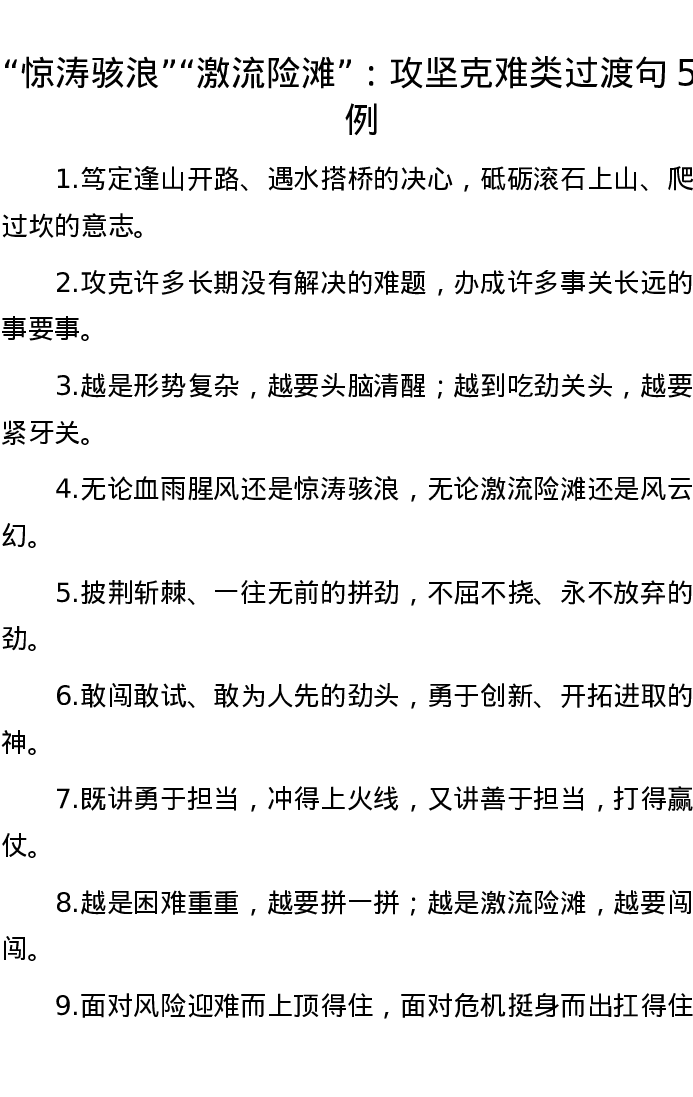 “惊涛骇浪”“激流险滩”:攻坚克难类过渡句50例