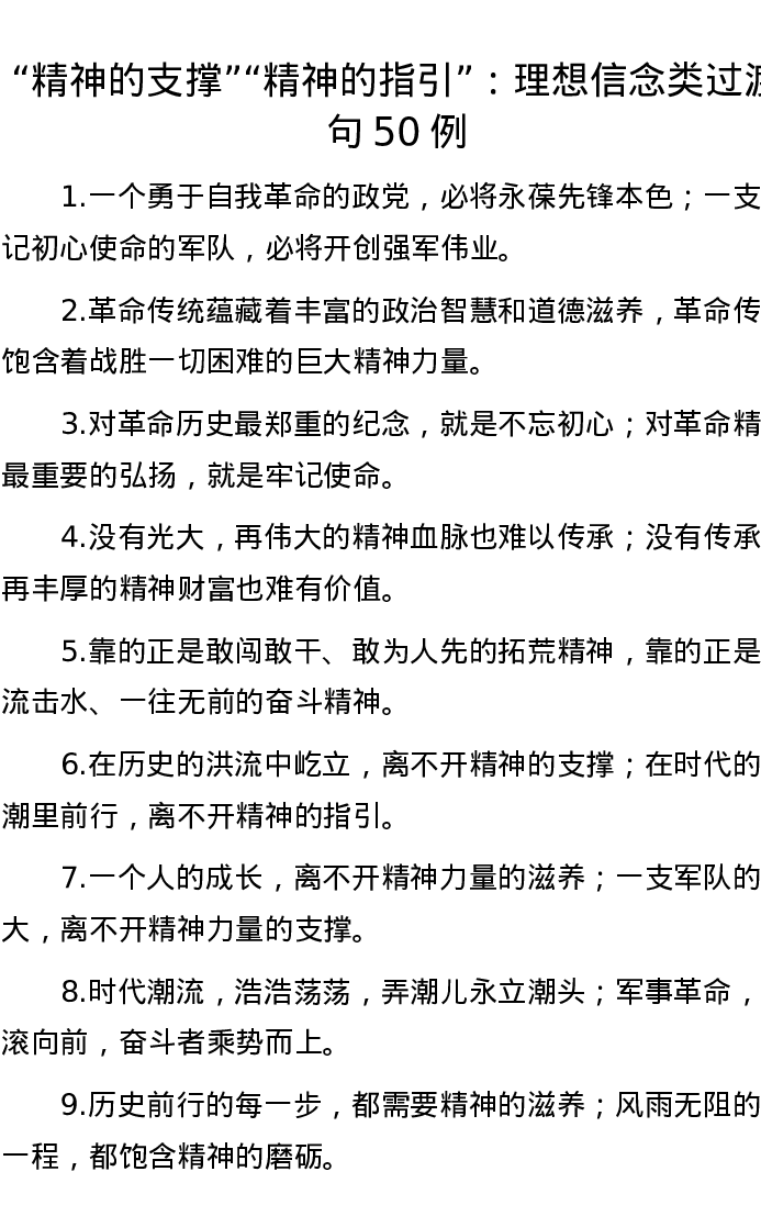 “精神的支撑”“精神的指引”:理想信念类过渡句50例
