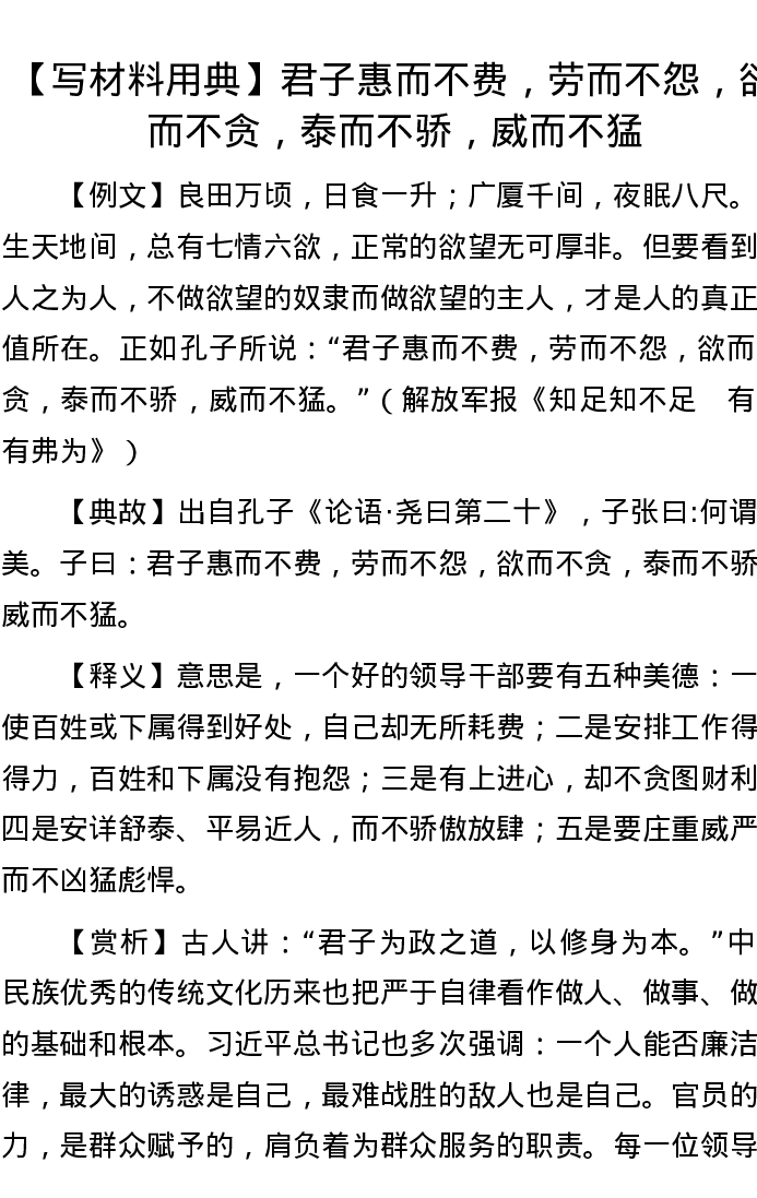 【写材料用典】君子惠而不费,劳而不怨,欲而不贪,泰而不骄,威而不猛