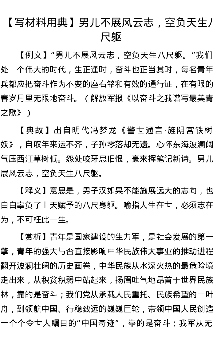 【写材料用典】男儿不展风云志,空负天生八尺躯