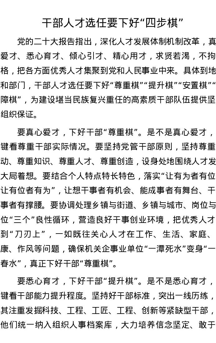 干部人才选任要下好“四步棋”
