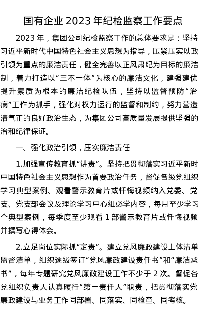 国有企业2023年纪检监察工作要点