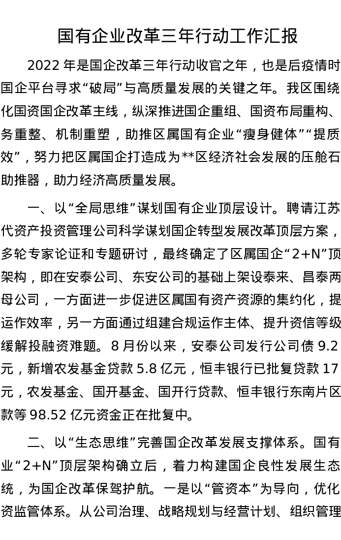 国有企业改革三年行动工作汇报