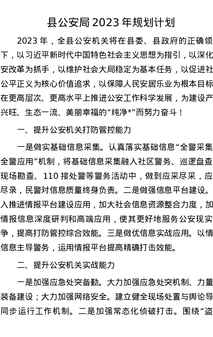 县公安局2023年规划计划