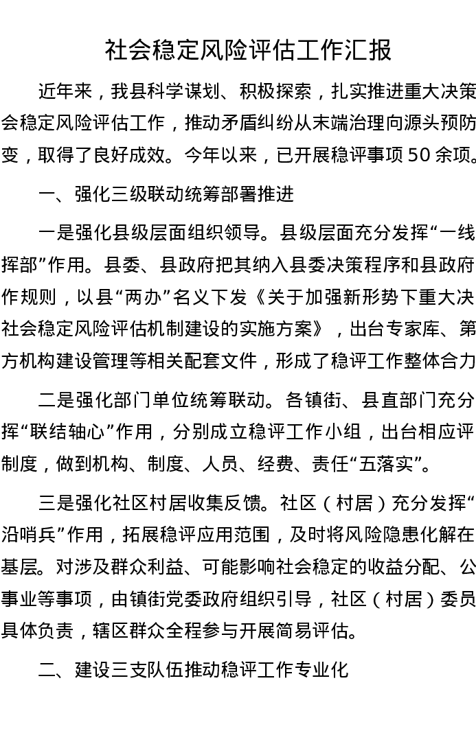 社会稳定风险评估工作汇报