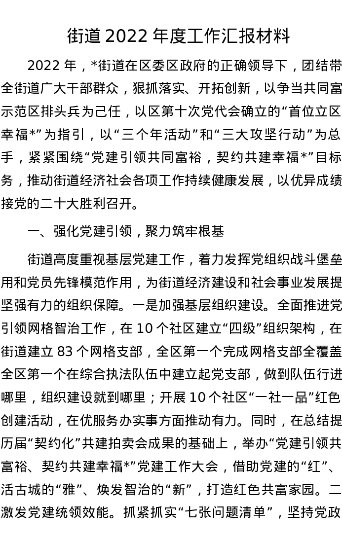 街道2022年度工作汇报材料