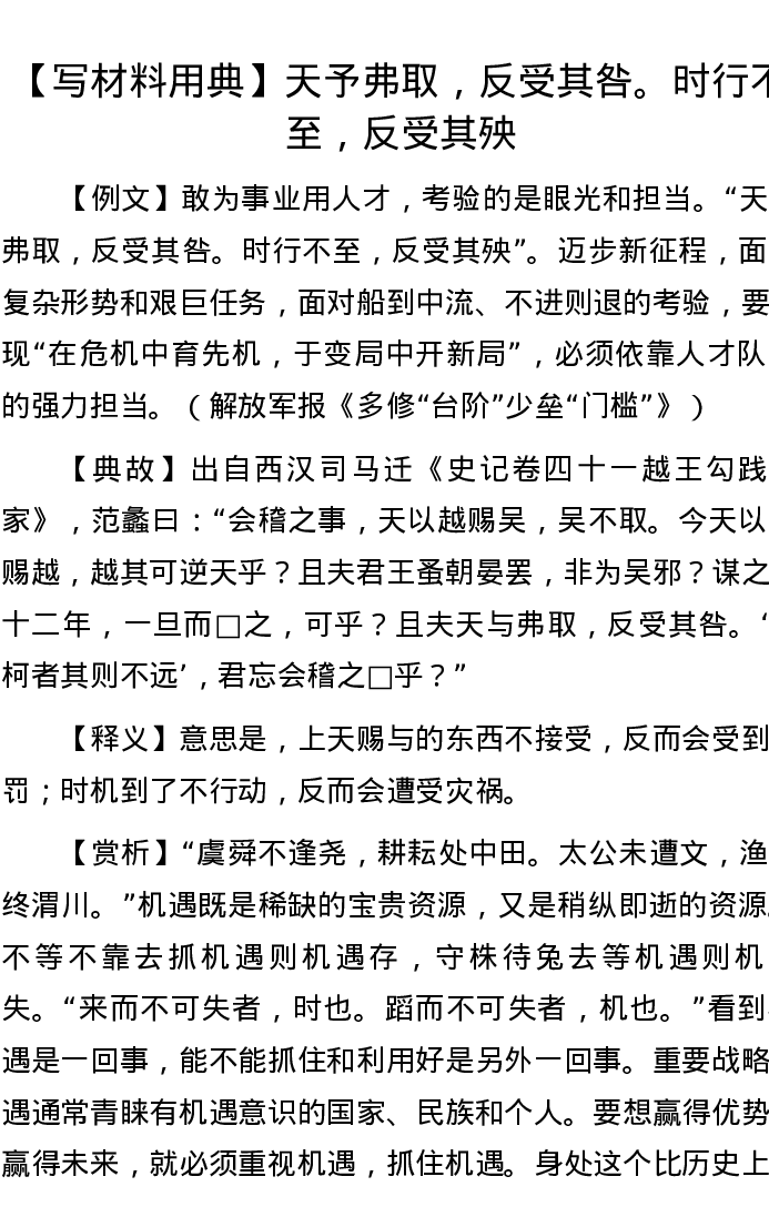 【写材料用典】天予弗取,反受其咎。时行不至,反受其殃