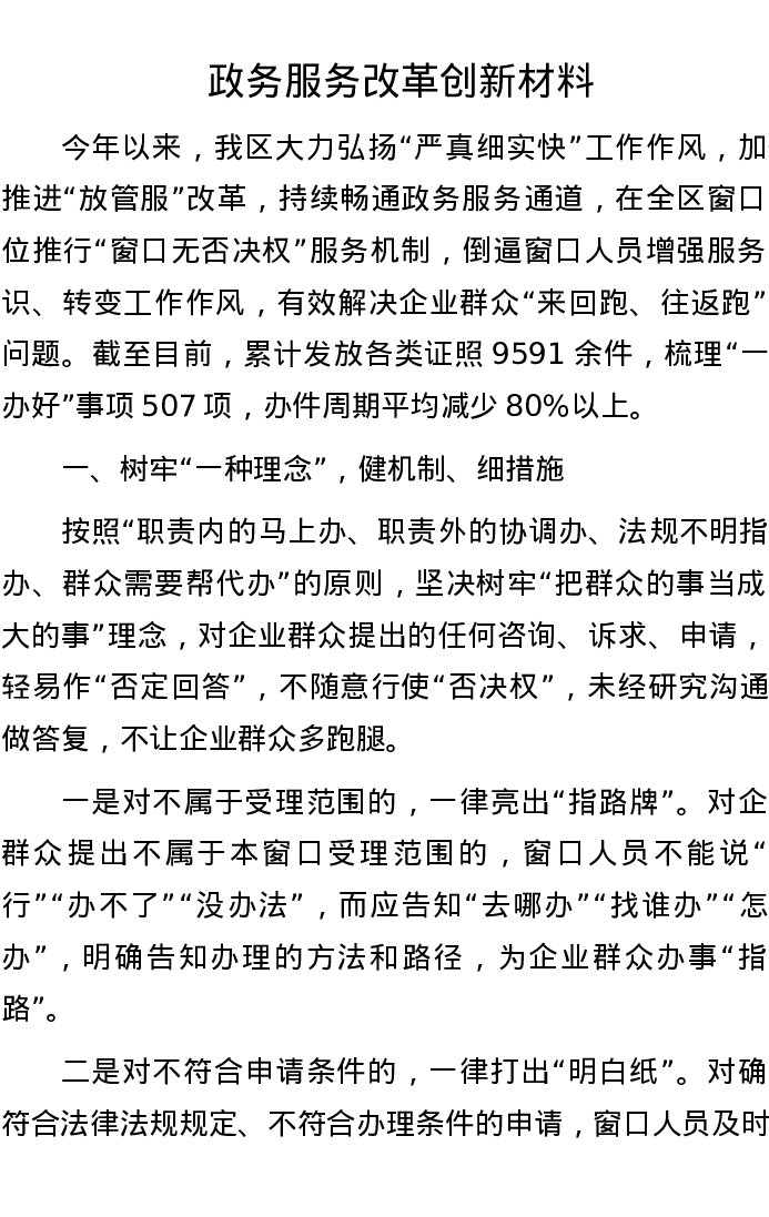 政务服务改革创新材料