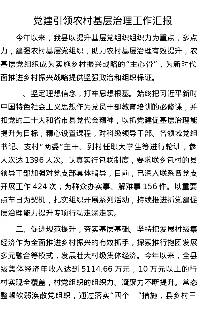 党建引领农村基层治理工作汇报