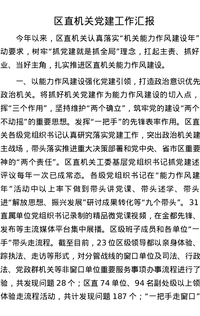 区直机关党建工作汇报