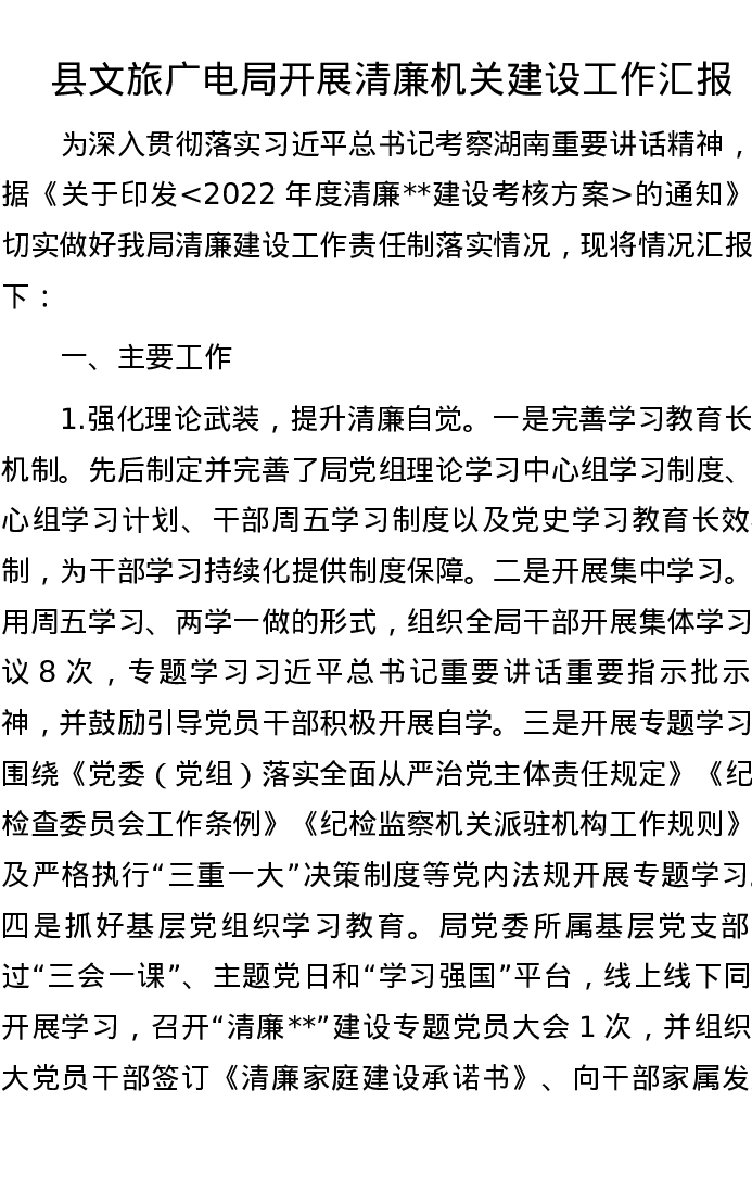 县文旅广电局开展清廉机关建设工作汇报