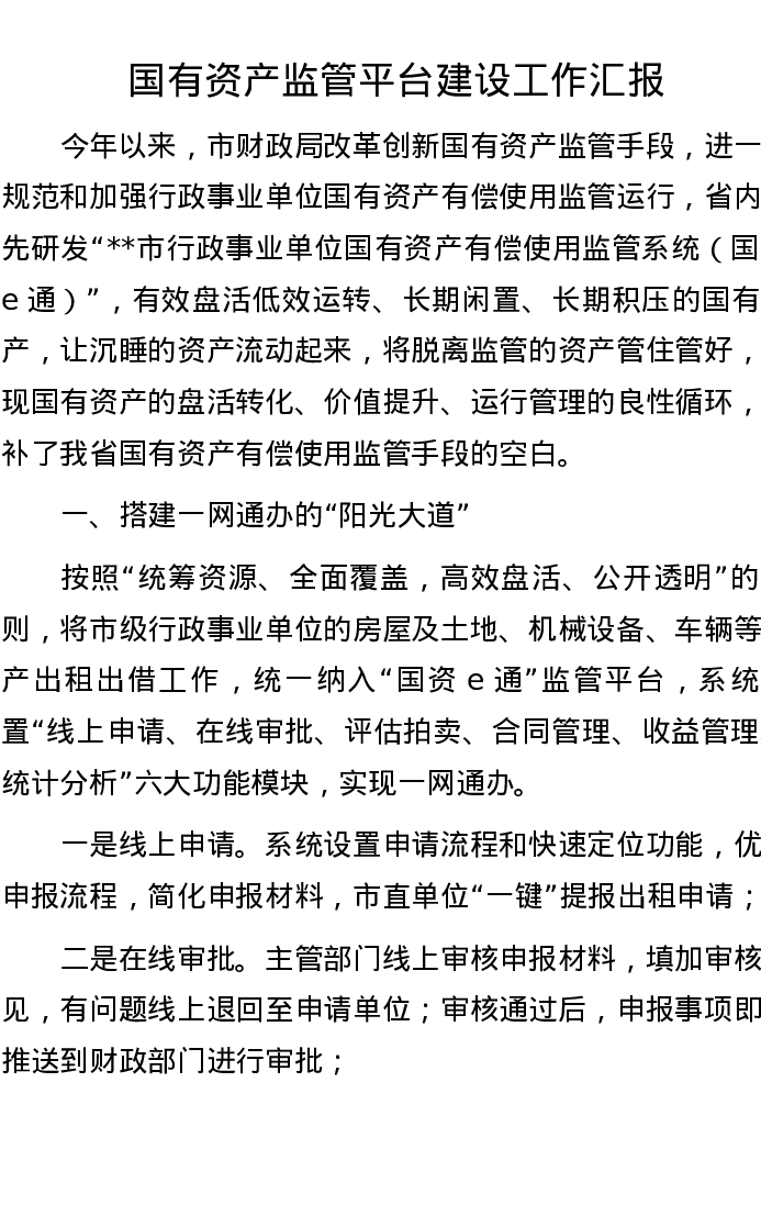 国有资产监管平台建设工作汇报