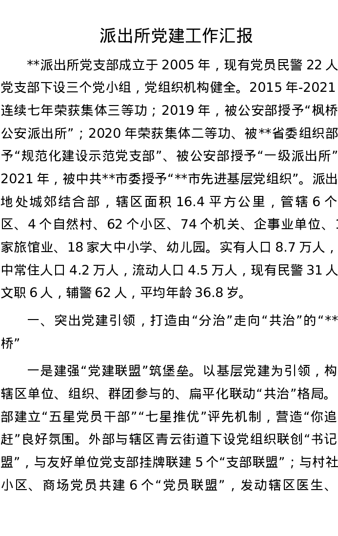 派出所党建工作汇报