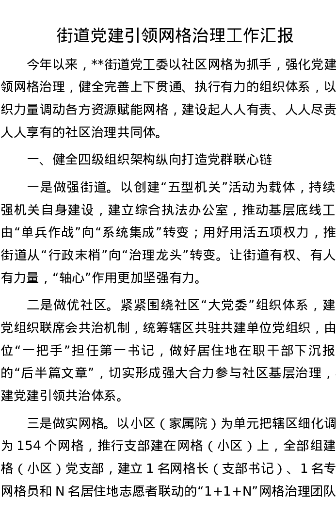 街道党建引领网格治理工作汇报