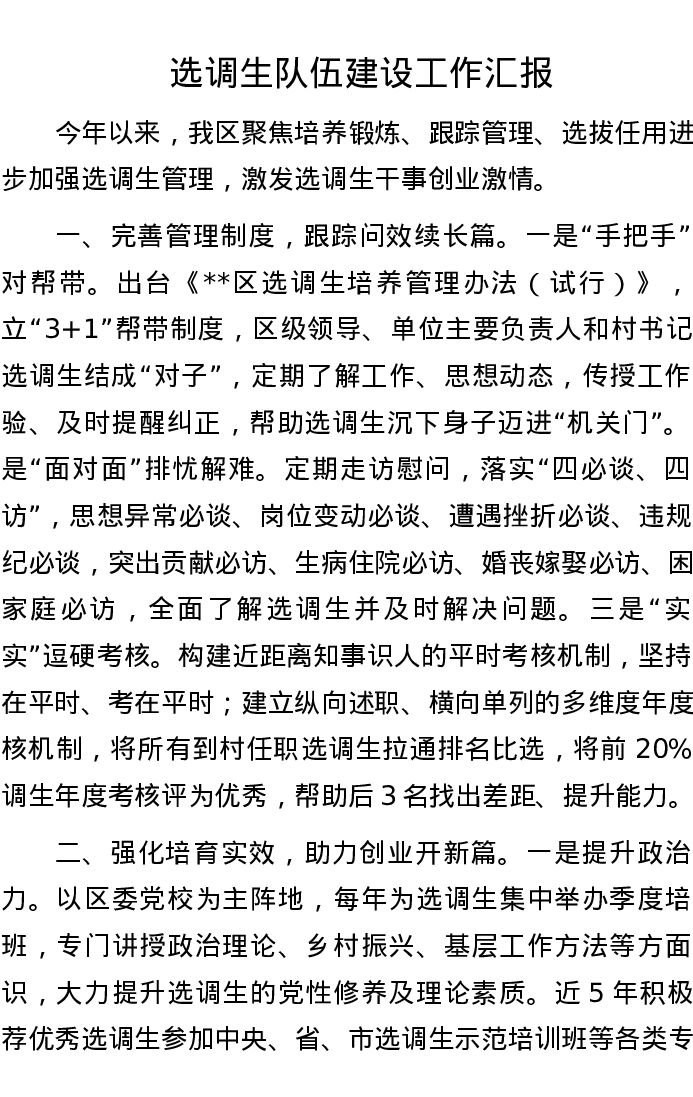 选调生队伍建设工作汇报