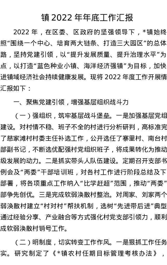 镇2022年年底工作汇报