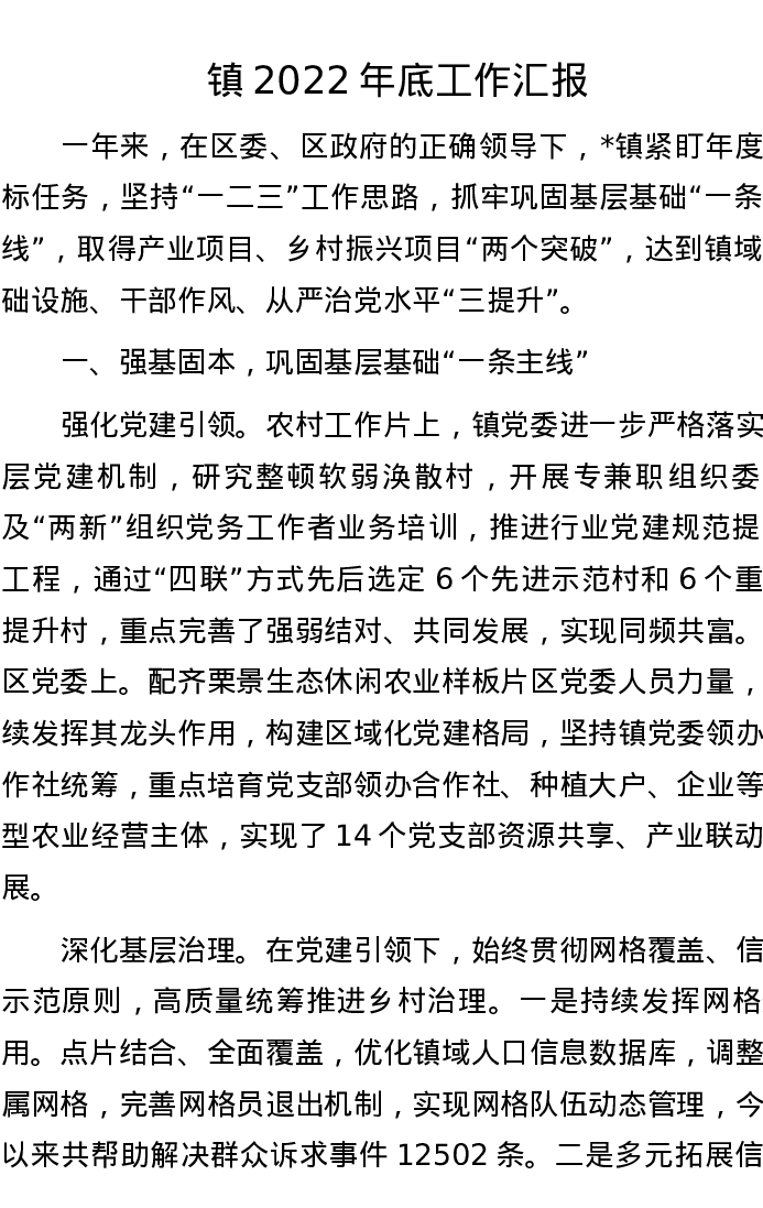 镇2022年底工作汇报