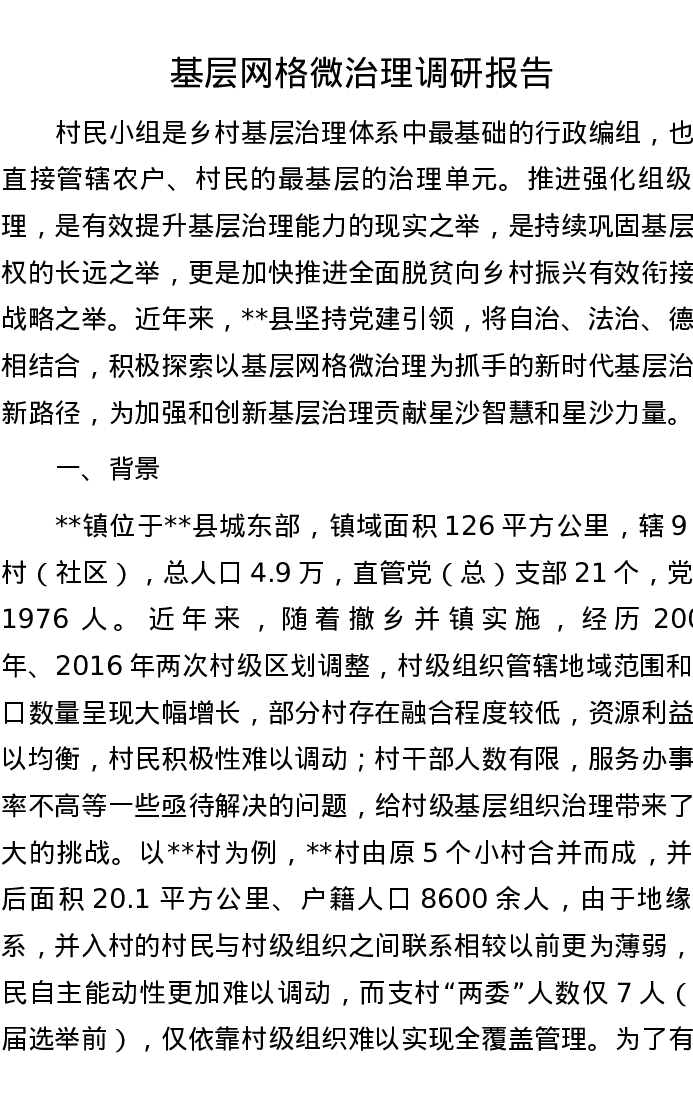基层网格微治理调研报告