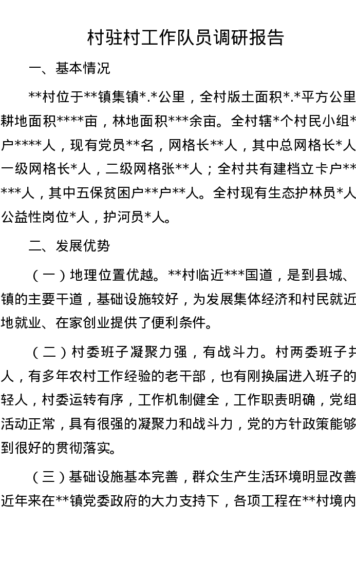 村驻村工作队员调研报告