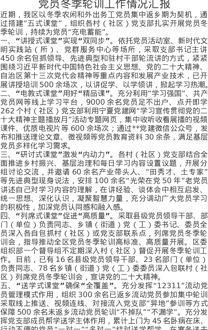 党员冬季轮训工作情况汇报