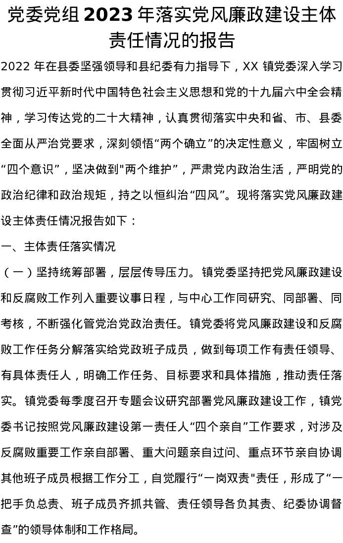 PPT:2023党委落实党风廉政建设主体责任情况报告课件