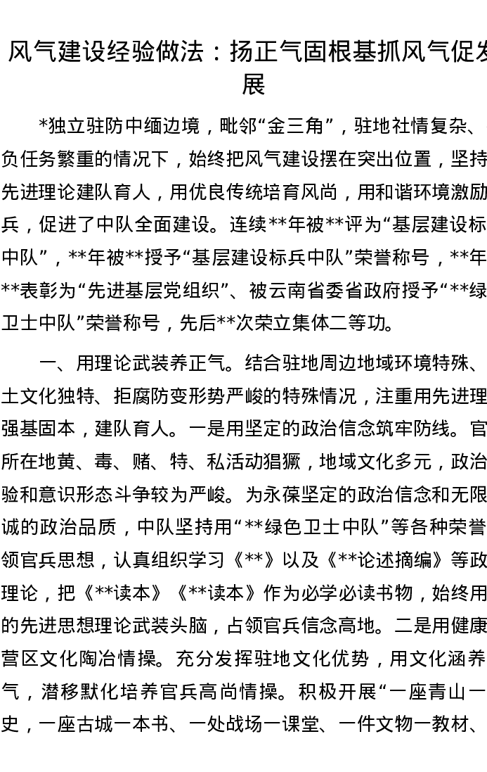 风气建设经验做法:扬正气固根基 抓风气促发展