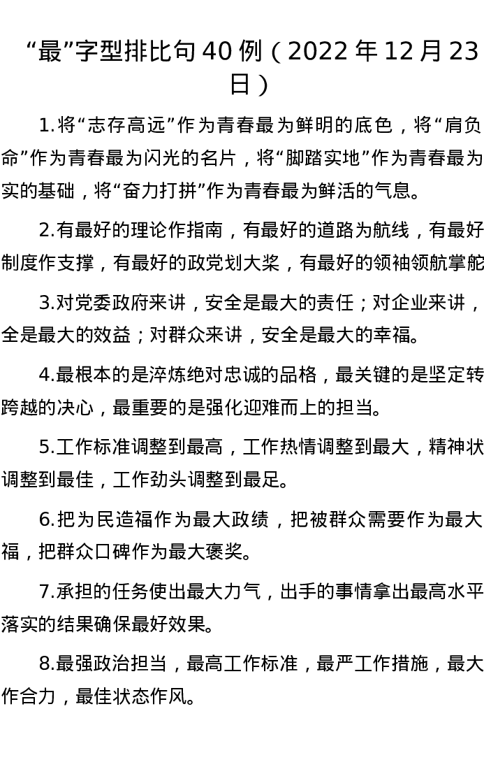 “最”字型排比句40例(2022年12月23日)