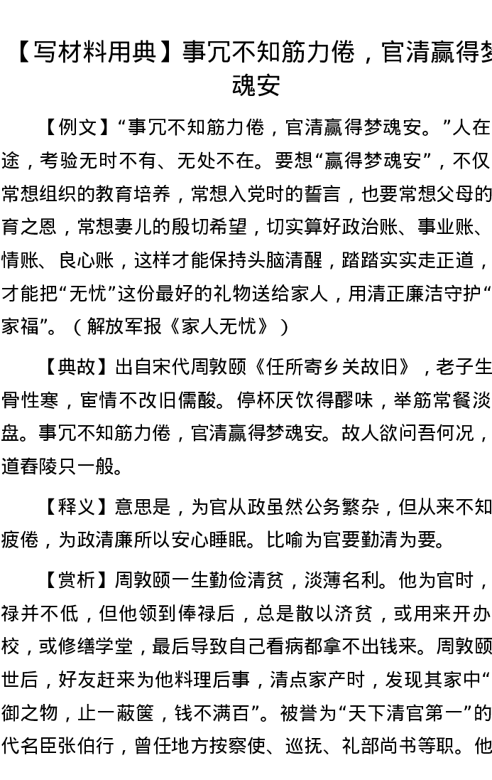 【写材料用典】事冗不知筋力倦,官清赢得梦魂安