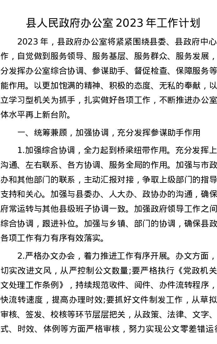 县人民政府办公室2023年工作计划