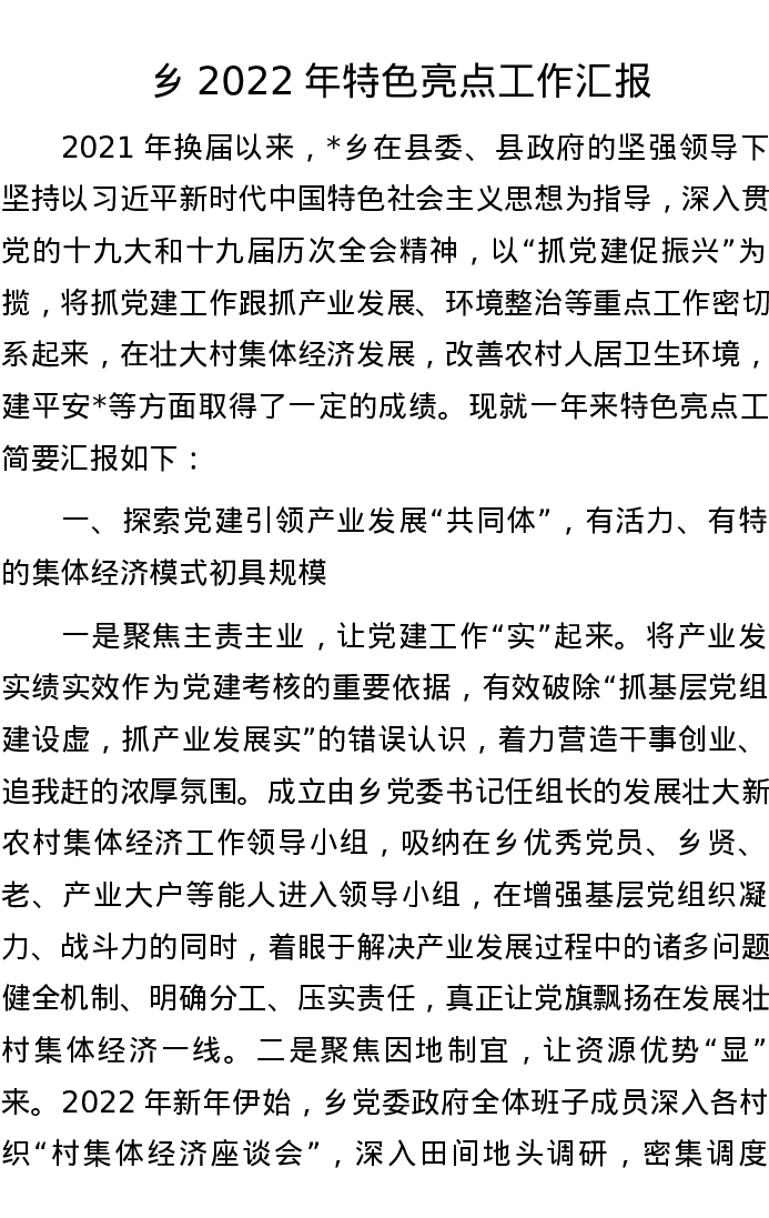 乡2022年特色亮点工作汇报