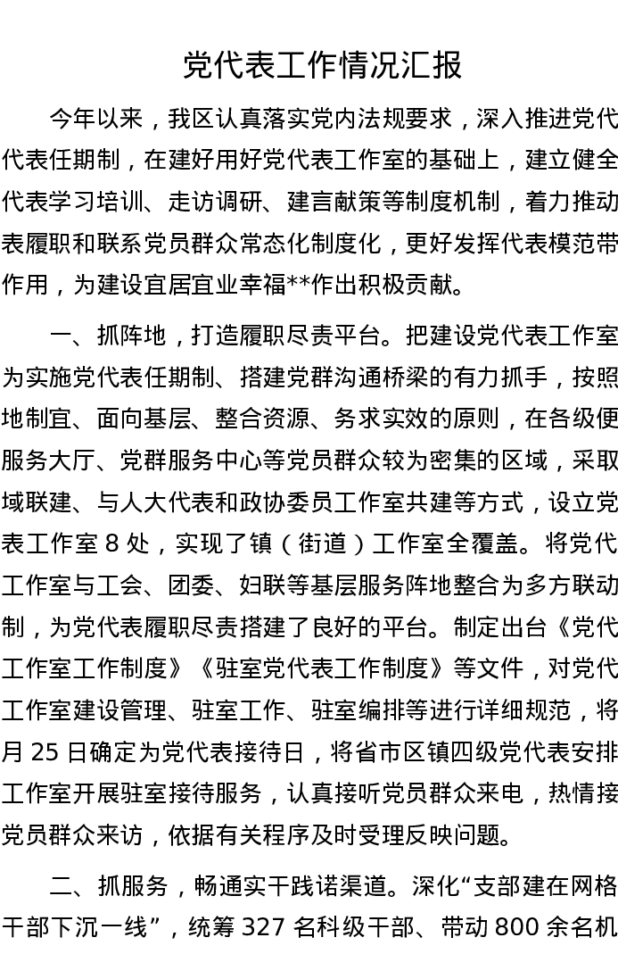 党代表工作情况汇报