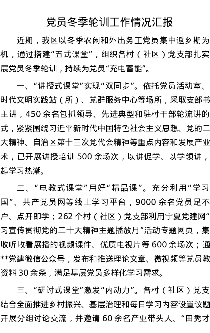 党员冬季轮训工作情况汇报