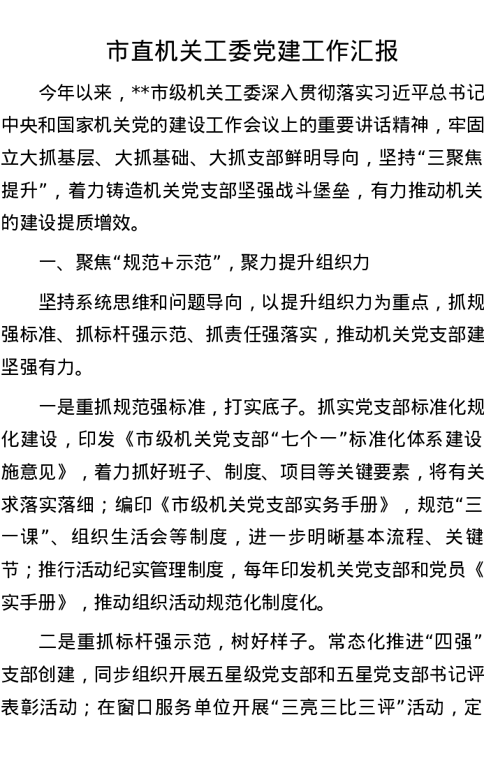 市直机关工委党建工作汇报