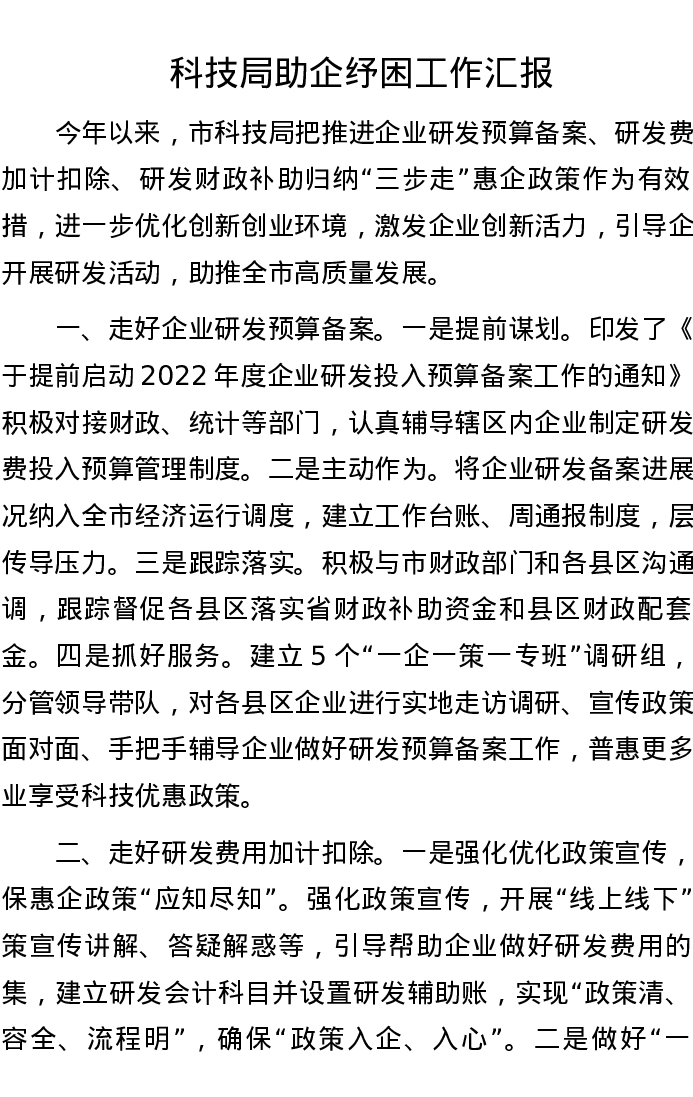 科技局助企纾困工作汇报