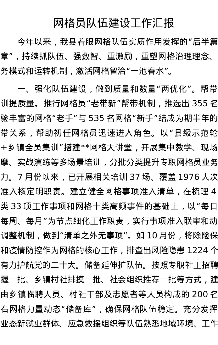 网格员队伍建设工作汇报