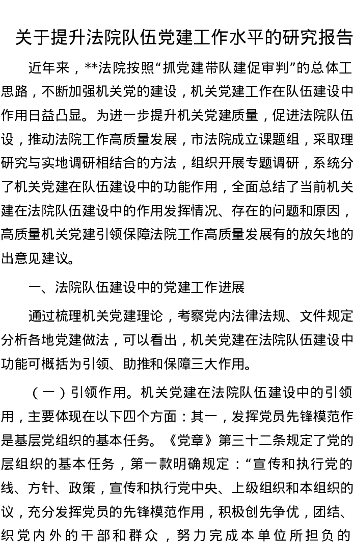 关于提升法院队伍党建工作水平的研究报告