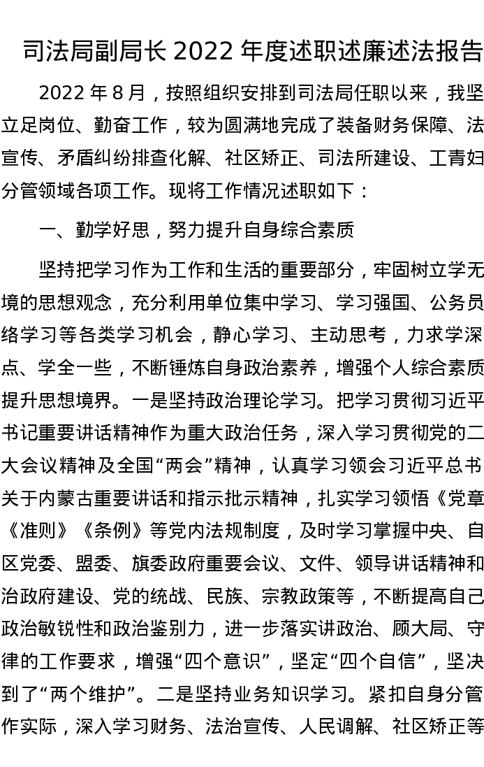 司法局副局长2022年度述职述廉述法报告