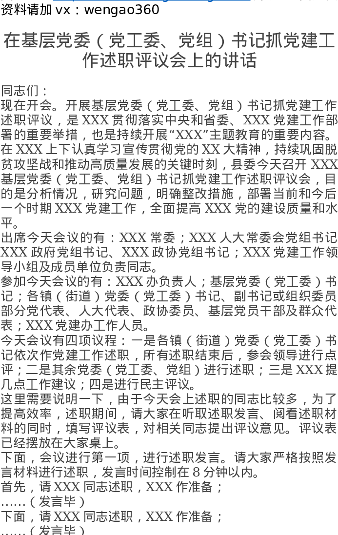 在基层党委(党工委、党组)书记抓党建工作述职评议会上的讲话