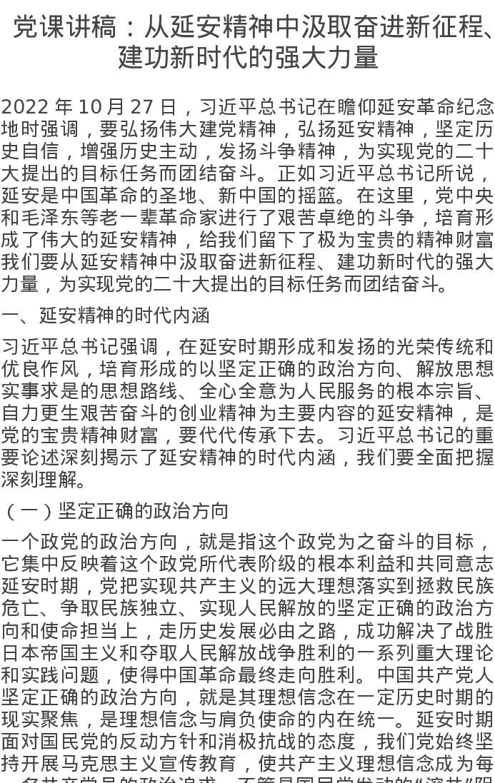 党课讲稿:从延安精神中汲取奋进新征程、建功新时代的强大力量