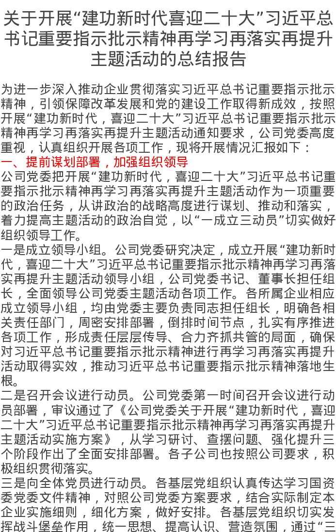 关于开展“建功新时代喜迎二十大”总书记重要指示批示精神再学习再落实再提升主题活动的总结报告