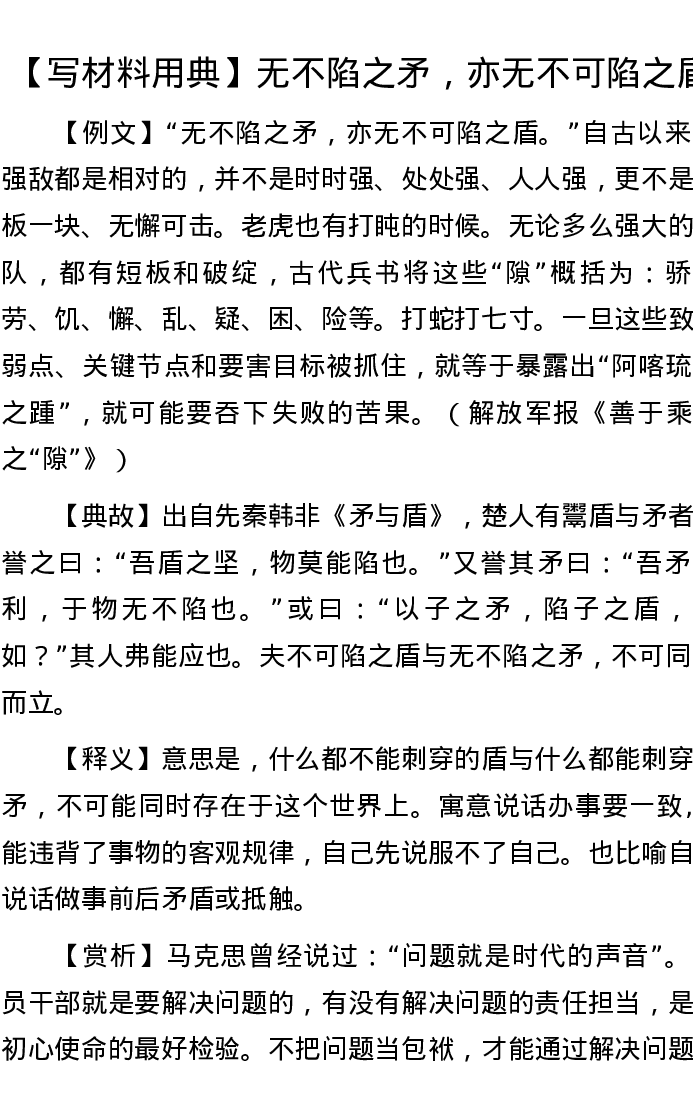 【写材料用典】无不陷之矛,亦无不可陷之盾