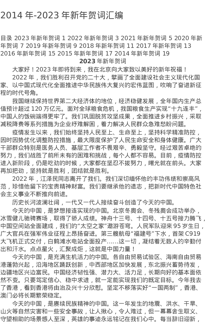 2014年-2023年新年贺词汇编