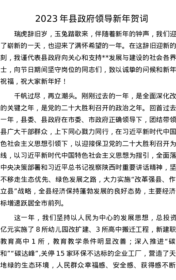 2023年县政府领导新年贺词