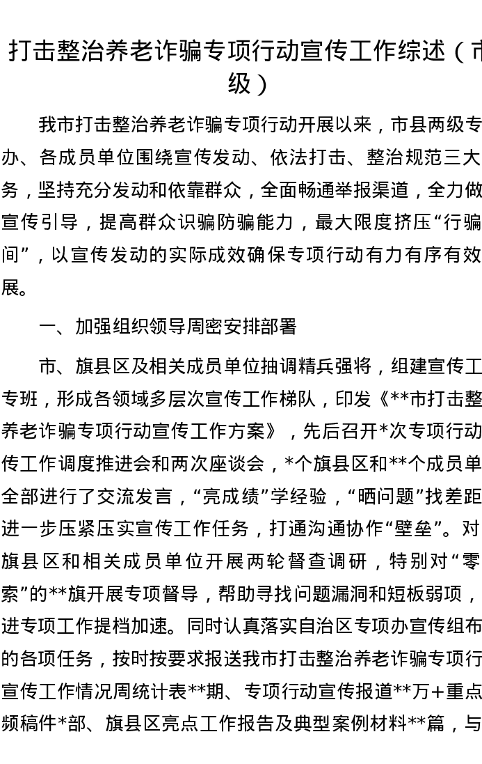 打击整治养老诈骗专项行动宣传工作综述(市级)