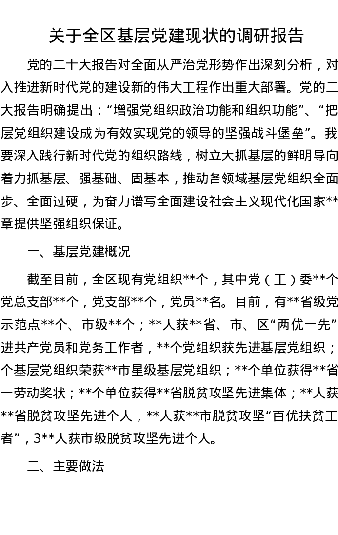 关于全区基层党建现状的调研报告