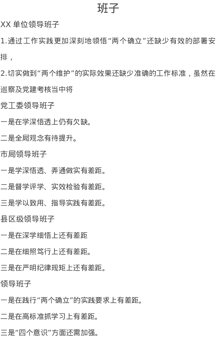 2023民主生活会对照检查材料提纲(1)