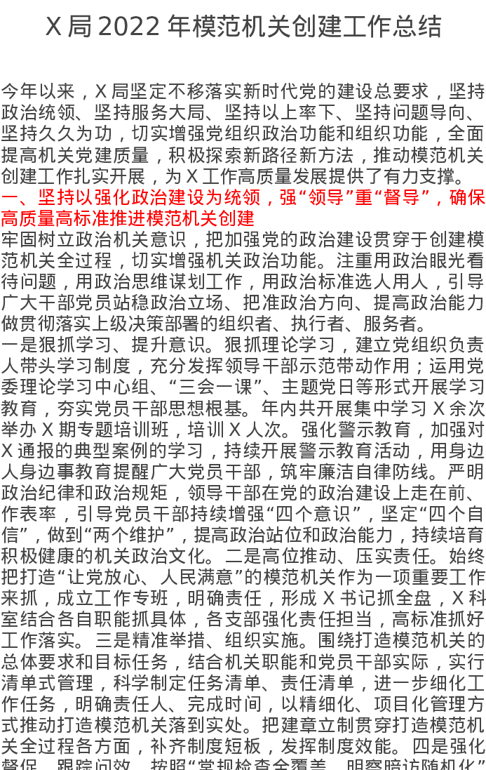 X局2022年模范机关创建工作总结