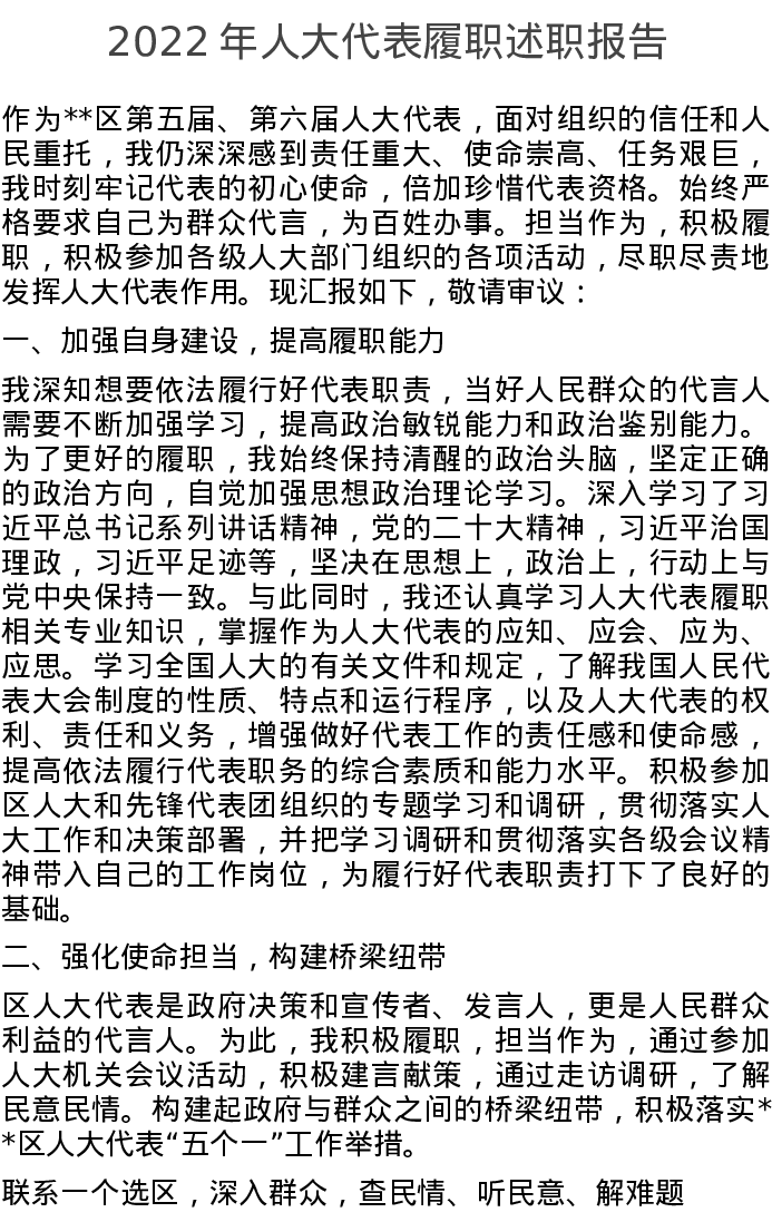 2022年人大代表履职述职报告