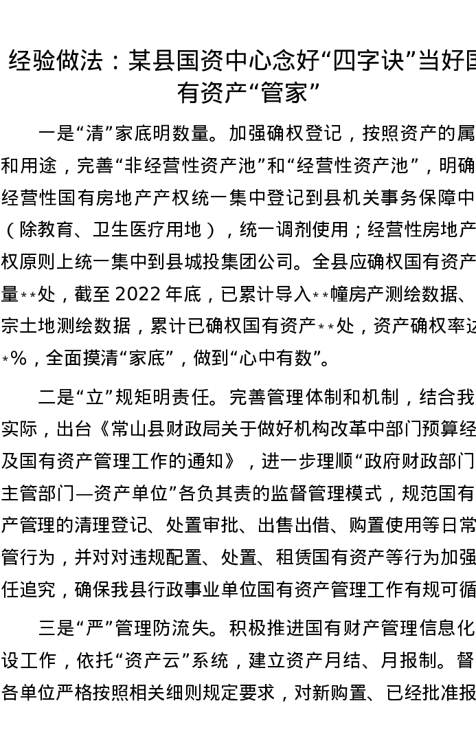 经验做法:某县国资中心念好“四字诀”当好国有资产“管家”